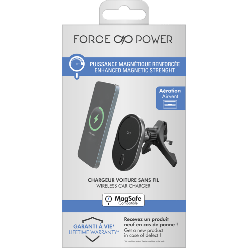 Ciesz się wygodą podczas jazdy samochodem. Dzięki ładowaniu indukcyjnemu o mocy 15 W możesz w mgnieniu oka zasilić swój smartfon zawsze wtedy, gdy najbardziej tego potrzebujesz. Wystarczy, że umieścisz smartfon na bazie, by rozpocząć ładowanie bezprzewodowe. Uchwyt jest kompatybilny z technologią MagSafe, więc możesz bez obaw ładować nim swojego iPhone’a. Kilka wbudowanych magnesów precyzyjnie wyrównuje smartfon na podkładce i poprawia wydajność ładowania. Nie musisz nawet wyjmować telefonu z etui, ładowarka dostosowana jest do etui o grubości do 3 mm. Standard ładowania Qi z portem typu C pozwala ładować wiele różnych urządzeń, także smartfonów niekompatybilnych z MagSafe. Dzięki dożywotniej gwarancji produktów marki Force możesz wymienić produkt na nowy w przypadku jego uszkodzenia. Taka możliwość jest raz w roku i bez ograniczeń czasowych. Wystarczy zarejestrować się na stronie: https://warranty.force-glass.com/pl w ciągu 30 dni od zakupu.