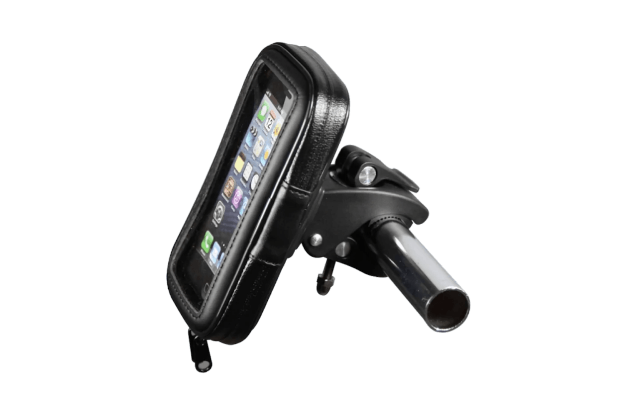 • Uchwyt rowerowy na telefon do 6 cali z wodoodpornym pokrowcem. Do zestawu dołączone są wypełniacze amortyzujące wstrząsy oraz pomagających utrzymać telefon tuż pod wierzchnią folią. Uchwyt z pokrowcem pozwala na korzystanie z telefonu w trakcie jazdy na rowerze także podczas deszczu, a zawias kulowy umożliwia wygodną regulację pochylenia uchwytu.