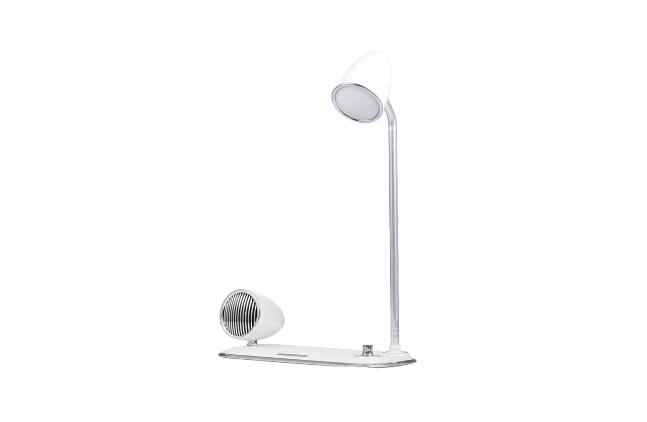 • Ten wielofunkcyjny sprzęt 3 w 1 sprawdzi się idealnie do pracy i rozrywki! Energooszczędne światło LED jest przyjazne dla środowiska i portfela, a dodatkowym atutem jest możliwość regulacji barwy i jasności. Dzięki łączności Bluetooth możesz przesłać ze smartfona ulubioną muzykę, podcast czy audiobook – nie musisz się martwić o to, że telefon się rozładuje. Podkładka lampki zapewnia szybkie bezprzewodowe ładowanie.