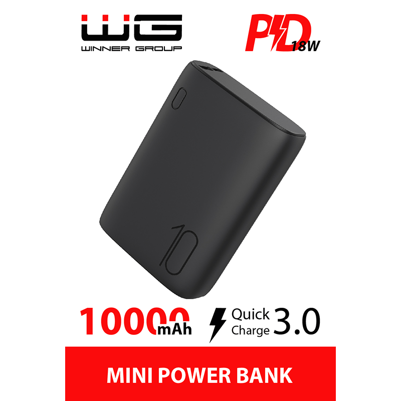 Powerbank 10000 mAh z szybkim ładowaniem PD. To kolejna nowość producenta Winner Group – WG. Przenośna bateria do najnowszych telefonów w kompaktowych wymiarach z nowoczesnym szybkim ładowaniem PD18W na porcie TypC oraz QC 3.0 – dla starczych modeli na porcie Mirco USB. Pojemność 10 000 mAh zapewni Ci dostęp do energii, gdy tylko będziesz jej potrzebował. W zależności od baterii telefonu wystarczy na naładowanie 2-4 razy nowoczesnego smartfona. Całość ma kompaktowe wymiary, a obudowa została wykończona powierzchnią z bardzo dobrego materiału, przyjemnego w dotyku i ułatwiającą pewny chwyt. Powerbank jest kompatybilny ze wszystmi modelami smartfonów. W kilku słowach: praktycznie, szybko, kompaktowo, innowacyjnie i elegancko. Idealny kompromis między wielkością a mocą. Wysoka jakość w przystępnej cenie.