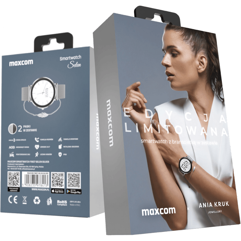 Niezależnie od tego, czy jesteś w pracy, na treningu czy na randce, smartwatch Maxcom FW27 Selen uzupełni Twój look w każdej sytuacji. Dwa dostępne paski: ze stali nierdzewnej i tekstylny, możesz wymieniać w zależności od okoliczności i efektu, jaki chcesz uzyskać. Całości dopełnia pozłacana bransoletka marki ANIA KRUK, dołączona do zestawu, która efektownie prezentuje się na nadgarstku. Dzięki takiemu biżuteryjnemu kompletowi poczujesz się naprawdę wyjątkowo.